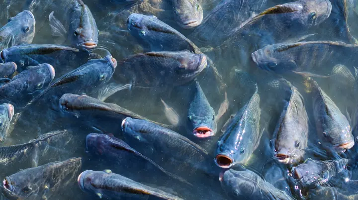 Sekumpulan Ikan Nila pada Permukaan Air